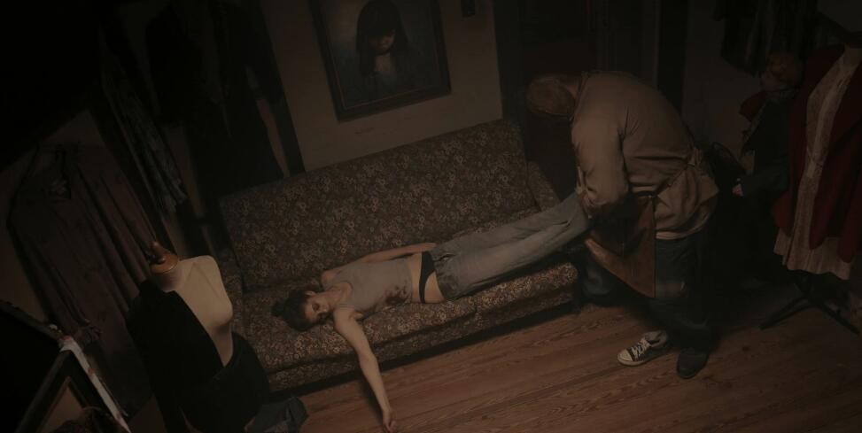 影片从一场极度压抑的苏醒开始。女主在阴冷的地下室中恢复意识,身体疼痛难忍,空气中弥漫着腐败与死亡的气息。她发现自己被尸体包围,而所有出口都被封死,唯一能做的,只有屏住呼吸,假装已经死去。